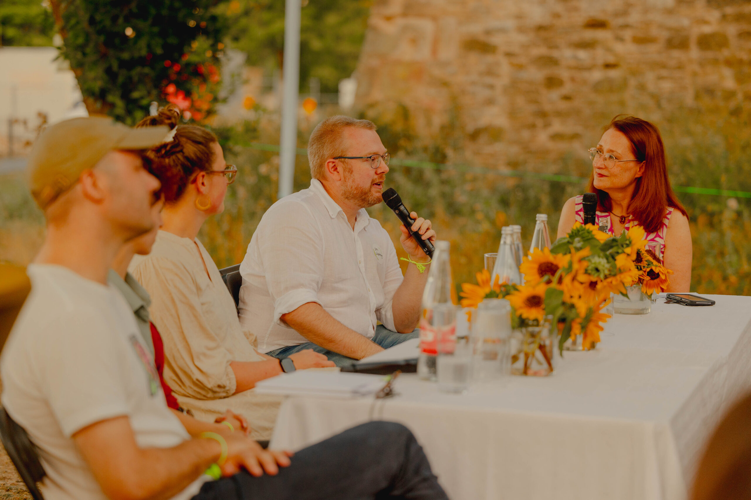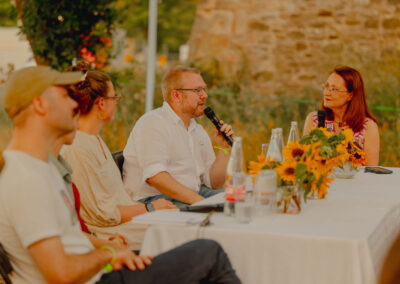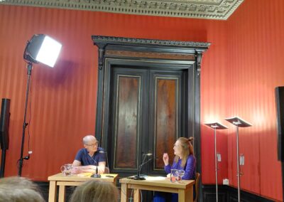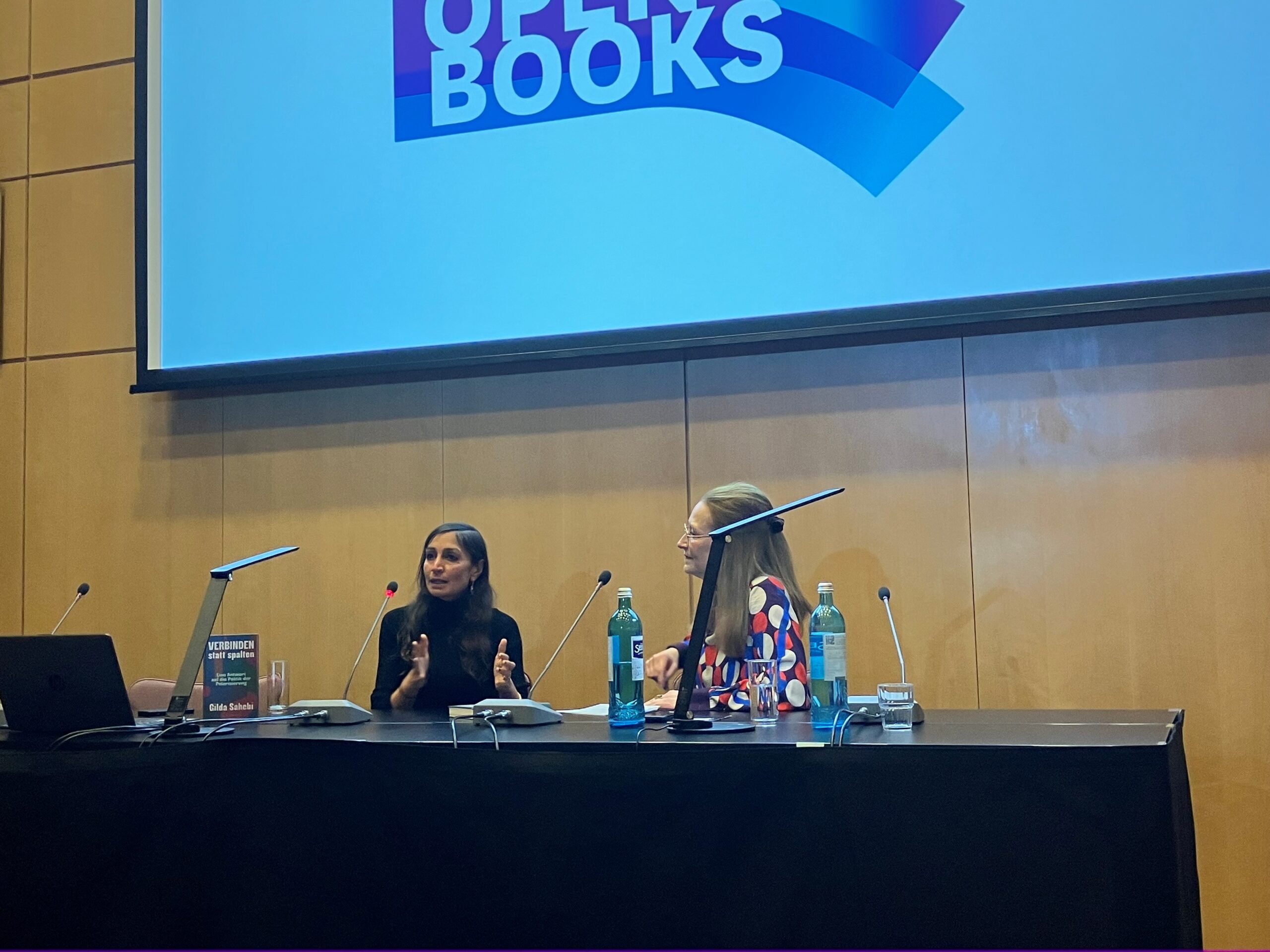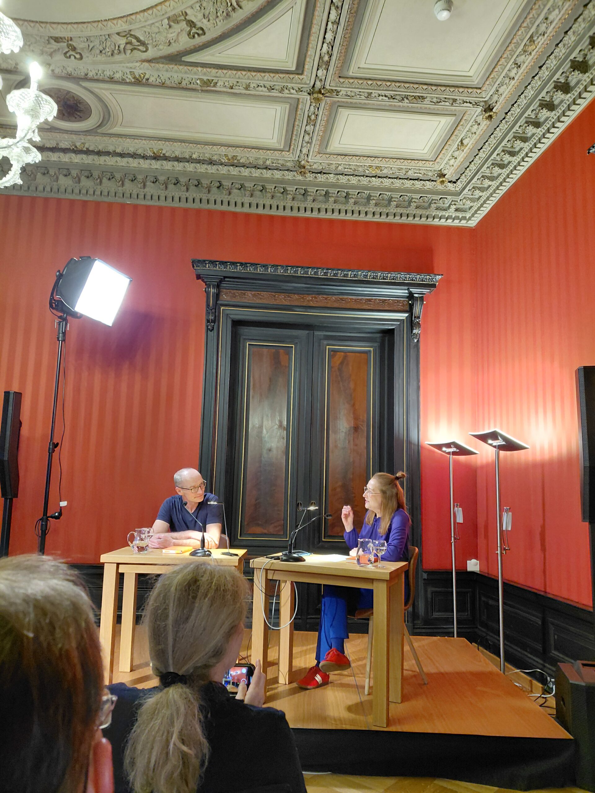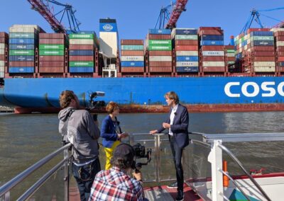 Hier bin ich in Interviews mit dem russischen Schriftsteller und Dissidenten Dmitry Glukhovsky. Dmitry spricht hervorragend Deutsch, aber wir könnten das Gespräch auch auf Russisch führen. Studiert habe ich im Hauptfach Slavistik mit den Sprachen Russisch und Polnisch. Examen in Bonn, ein Studienjahr habe ich an der Lomonosov-Universität in Moskau (MGU) verbracht. Das Studienziel war ursprünglich Literaturübersetzung. Meinen Beruf verstehe ich bis heute als eine Art „Übersetzung“: Komplexe Themen verständlich in die Sprache des Publikums zu übertragen. Nach dem Studium folgte ein Redaktionsvolontariat bei SAT.1 und anschließend einige Jahre in der aktuellen Berichterstattung für SAT.1, n-tv und ZDFheute, vor und hinter der Kamera. Ich bin Stipendiatin des RIAS USA-Journalisten-Programms und Mitglied der Jury des Friedrich Vogel-Preises für Wirtschaftsjournalismus.